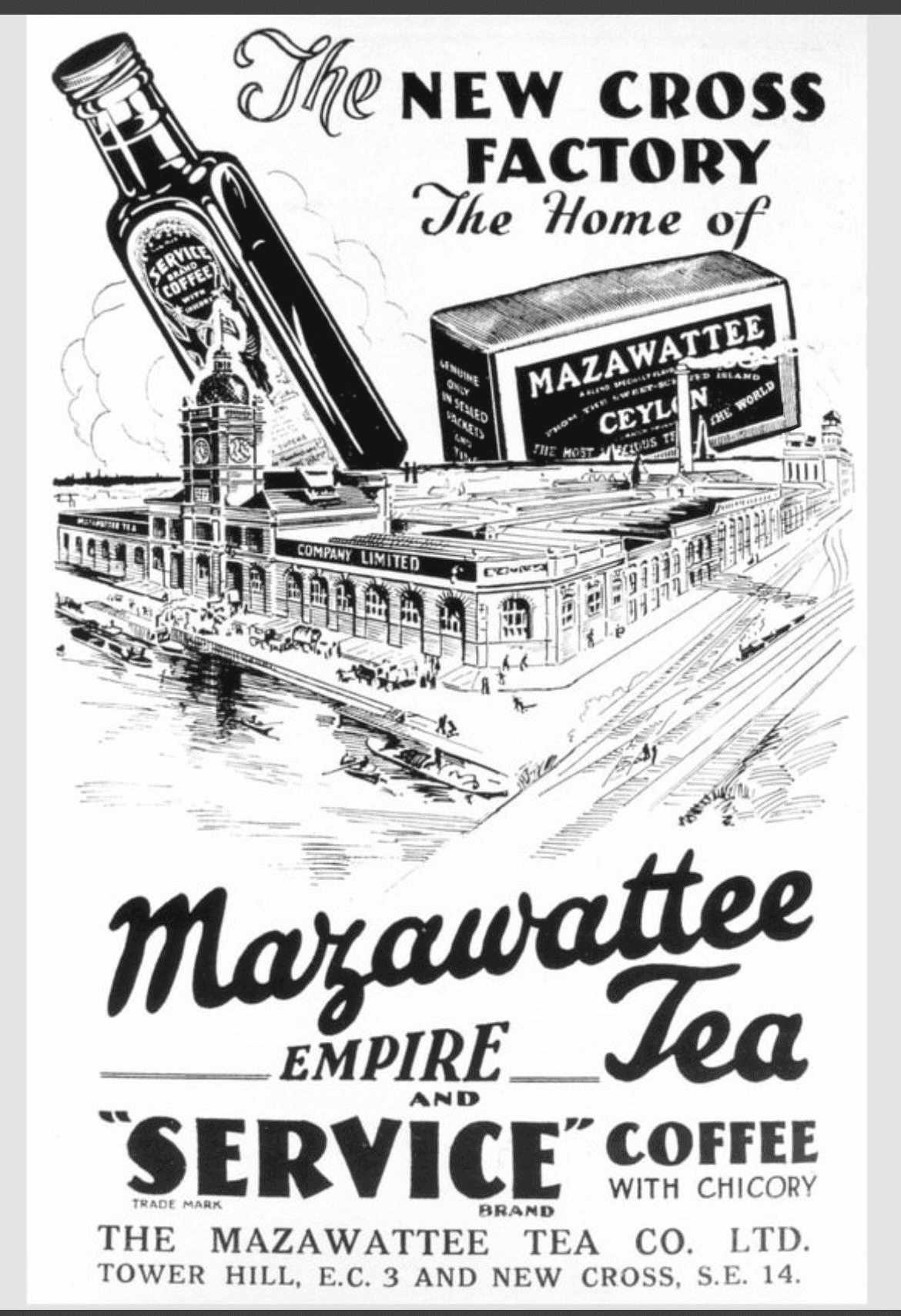 1901 saw the establishment of a new £400,000 factory in New Cross. The largest and best equipped tea processing plant in the world. The new factory allowed the company to move into the manufacturing of chocolate and cocoa confectionary. Unfortunately much of this factory was destroyed during air raids of World War II and only a part still remains. The part that house of baby called home.
